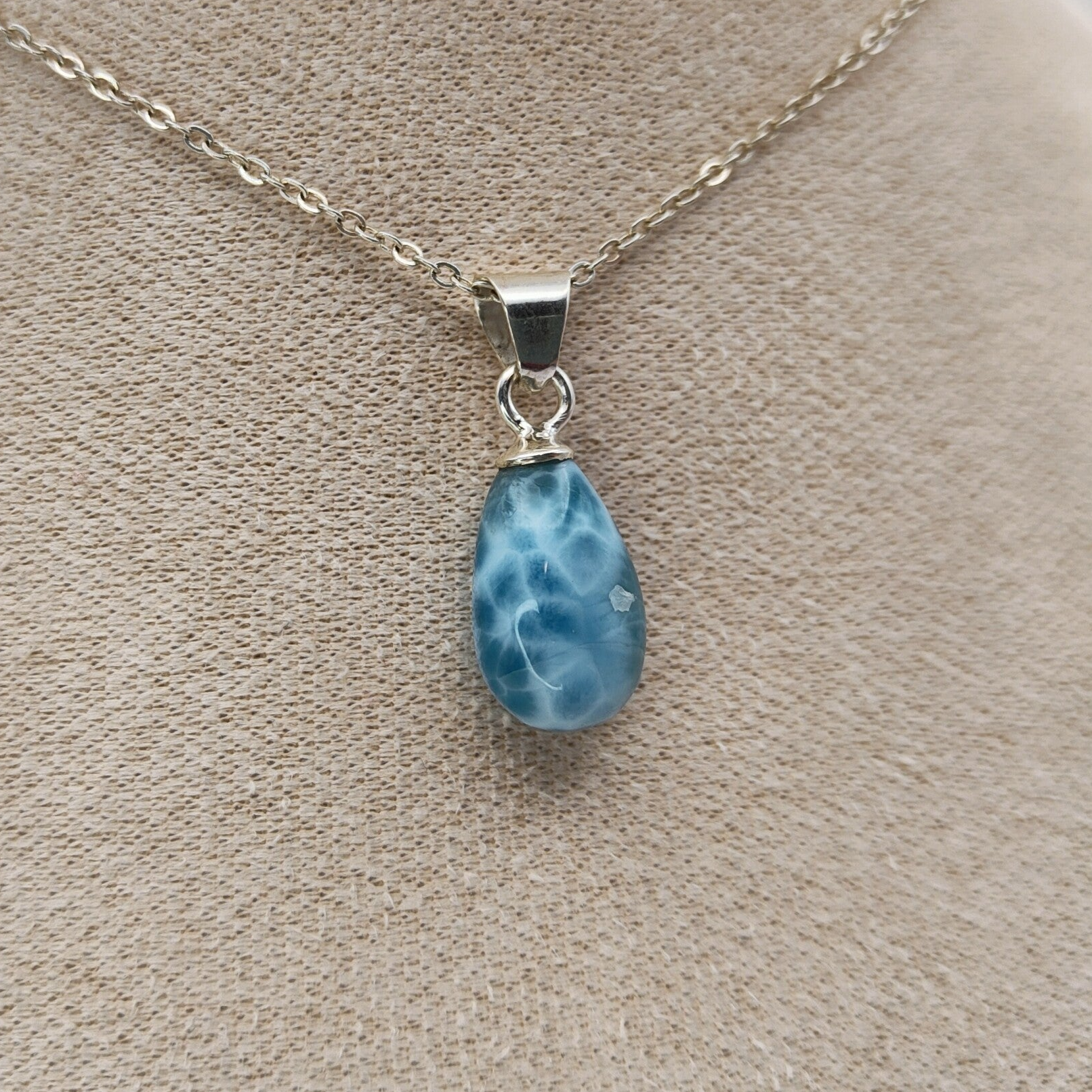 Let op: Larimar is heel gevoelig voor zonlicht, dit kan ervoor zorgen dat de mooie blauwe kleur vervaagd. Ook moet je bij deze mooie steen voorzichtig zijn met water.