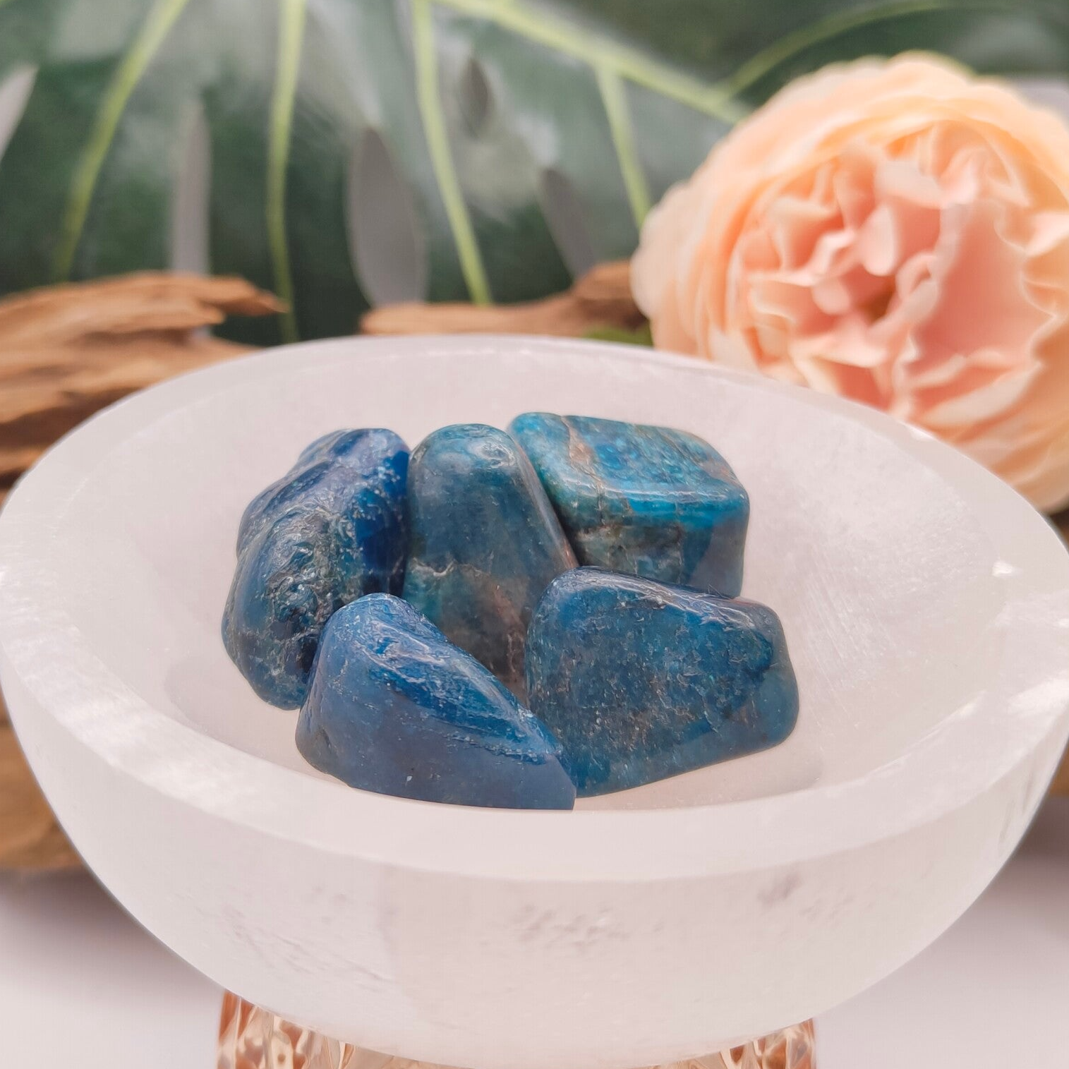 Blauwe Apatiet heeft als extra dat het kalmerend werkt en de geest in balans brengt. Het opent je keelchakra waardoor spreken in het openbaar makkelijker wordt. Ook heeft deze blauwe variant helende eigenschappen die gericht zijn op je hart en emotionele aandoeningen. Op spiritueel gebied weet blauwe Apatiet paranormale vermogens te versterken, is zeer geschikt om te gebruiken bij droomwerk en bied ondersteuning bij het oplossen van problemen waarbij de oorzaak in een vorig leven ligt.