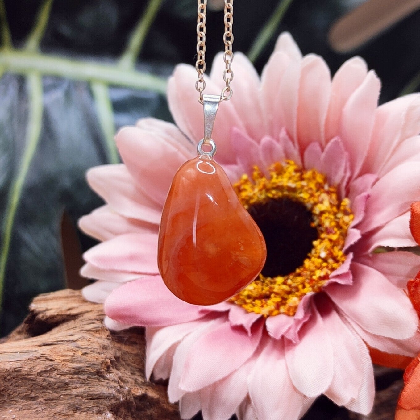Carneool is een vrolijk kristal dat bomvol levenskracht zit. Hij werkt aardend, activerend, opbeurend en geeft de drager een warm gevoel. Wanneer je in een dipje zit, is Carneool dé steen die je weet op te vrolijken, te motiveren en geeft je meteen een goede dosis zelfvertrouwen mee. Met Carneool heb je een perfecte helper om negatieve situaties snel achter je te laten. Daarnaast stimuleert het positieve keuzes, creativiteit en trekt het ook gelijk succes aan.