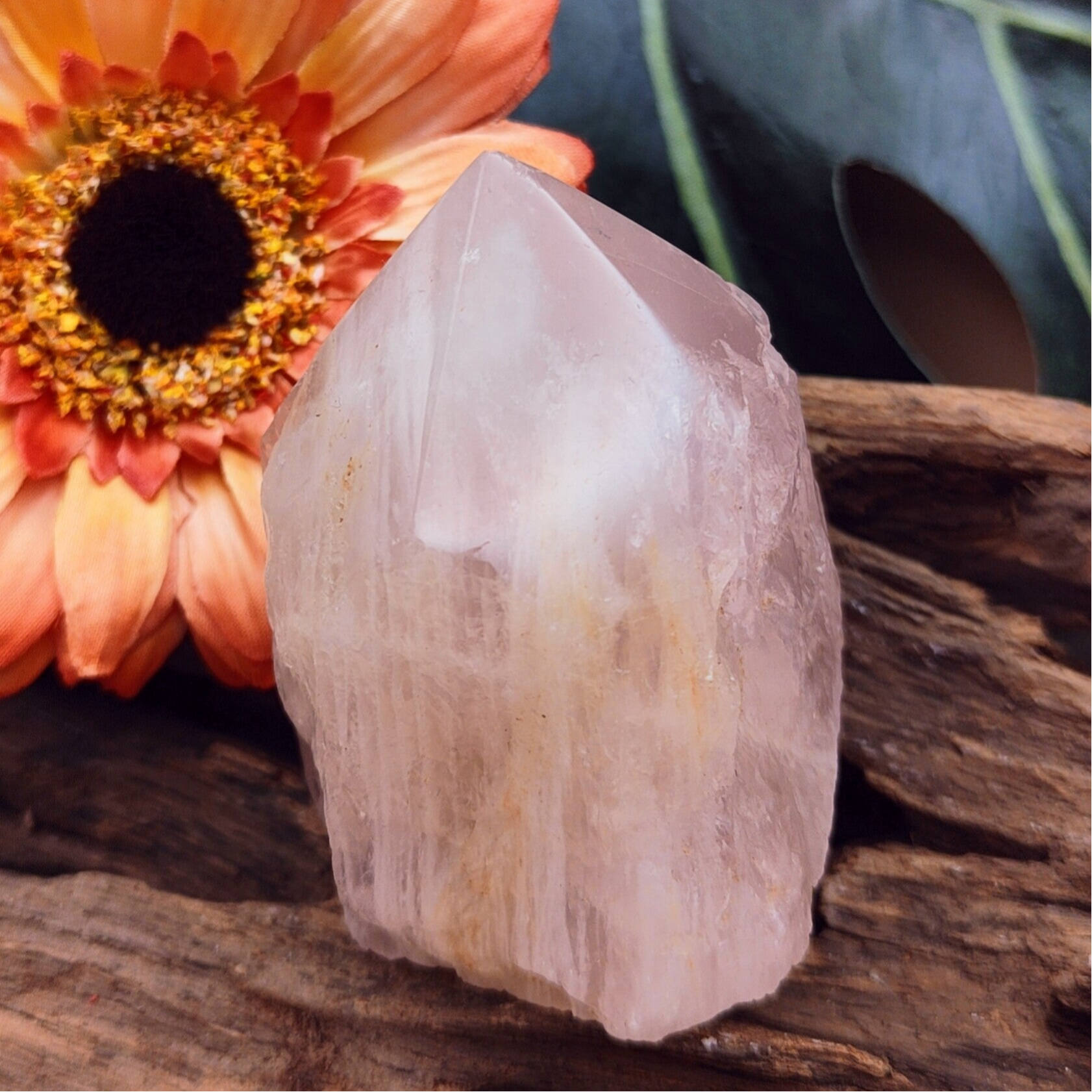 Let op: Rozenkwarts kan niet goed tegen fel zonlicht en wordt witter naarmate er veel energie aan onttrokken wordt. Wees lief voor haar en laad haar regelmatig op, dan zal ze haar mooie roze kleur weer laten zien.