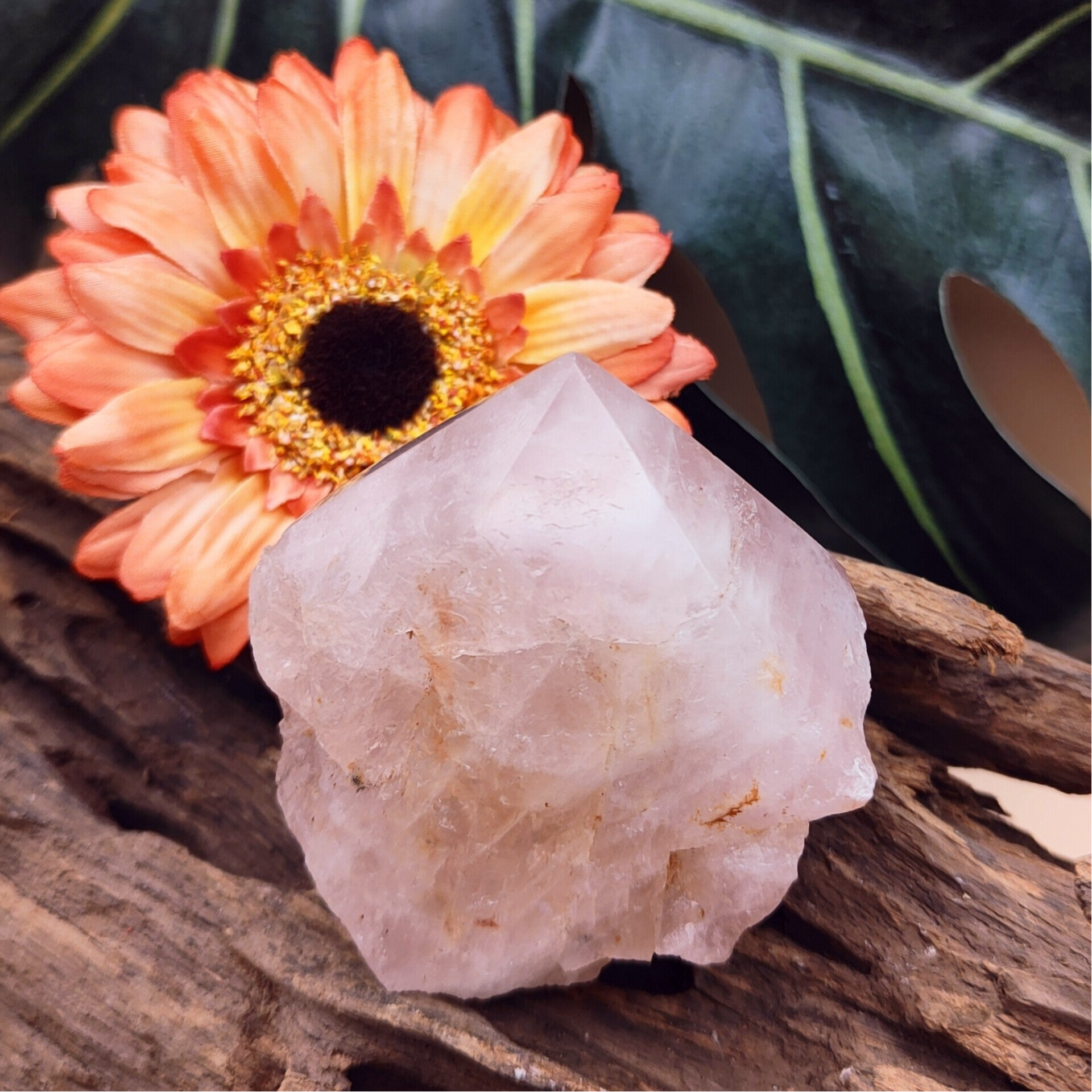 Let op: Rozenkwarts kan niet goed tegen fel zonlicht en wordt witter naarmate er veel energie aan onttrokken wordt. Wees lief voor haar en laad haar regelmatig op, dan zal ze haar mooie roze kleur weer laten zien.